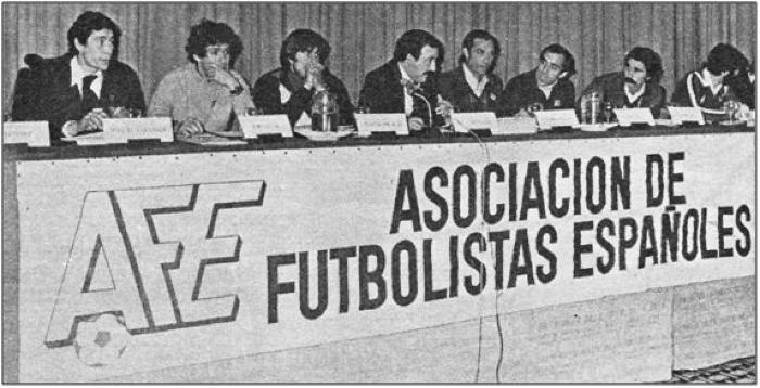 Una delle prime assemblee dell’AFE: tra i calciatori presenti al tavolo si notano José Manuel, Villar, Quino e Asensi.