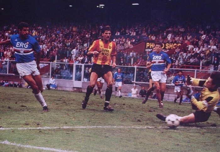 Quest’ultima frase dovrebbe subito confortare ogni potenziale lettore del libro: non si tratta di un saggio antropologico sulla religione, che richiede ore e ore di studio costante per essere decodificato e interpretato. È anzi un libro piuttosto scorrevole, che a ben vedere non è nemmeno un saggio sportivo. Novelli è vincolato al mondo del calcio da un decennio come arbitro, ma è innanzitutto uno scrittore e sceneggiatore. Il che significa essenzialmente una cosa: sa costruire narrazioni. E Il calcio come esperienza religiosa è proprio una narrazione, il racconto autobiografico di una giornata – mercoledì 19 aprile 1989, appunto – in cui il futuro autore di questo libro si avventurò assieme ad alcuni amici nell’audace impresa di seguire tutte e tre le partite delle italiane nelle coppe europee, di cui due dal vivo e una attraverso la scatola magica di una radiolina portatile. Sampdoria-Malines in Coppa delle Coppe, Bayern Monaco-Napoli in Coppa UEFA e Milan-Real Madrid in Coppa dei Campioni. Un momento topico del calcio italiano, che la narrazione archetipica di Novelli trasforma nel mito fondante dell’epoca d’oro del calcio italiano che sarebbe durata per i successivi vent’anni circa.