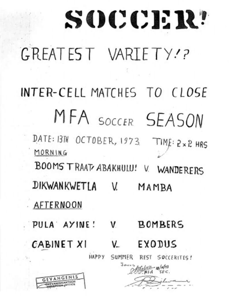 I prigionieri erano costretti a vestire solo pantaloncini corti, un modo per sottolineare che erano come dei ragazzini, e che quindi dovevano obbedire e comportarsi bene. Ogni mattina dovevano prendere dei sandali da una pila, e raramente si riuscivano a trovare calzature della propria misura, a volte non era possibile neppure averne una destra e una sinistra. Dovevano costruirsi da soli le proprie baracche con la pietra estratta dalla cava, e sull’isola non potevano fare nulla. Ma stare tutti insieme finì per creare una comunità, e consentì di organizzarsi politicamente anche all’interno della mura della prigione. Già nel 1964 gli ospiti di Robben Island presero a protestare per il loro diritto a leggere libri, a studiare, e a poter avere degli spazi ricreativi. A dicembre di quell’anno, decisero di usare i canali previsti per le lamentele rivolte alle autorità della prigione per subissarle con la stessa richiesta: il diritto di poter giocare a calcio. Non ricevettero nessuna risposta, ma andarono avanti fino al 1967, quando infine scelsero di ricorrere allo sciopero della fame. Dovette intervenire la Croce Rossa per convincere le autorità di Robben Island a lasciar giocare i prigionieri.