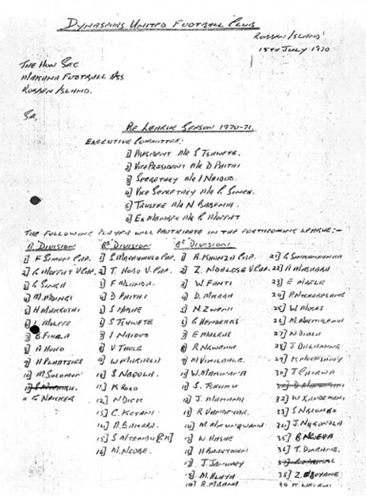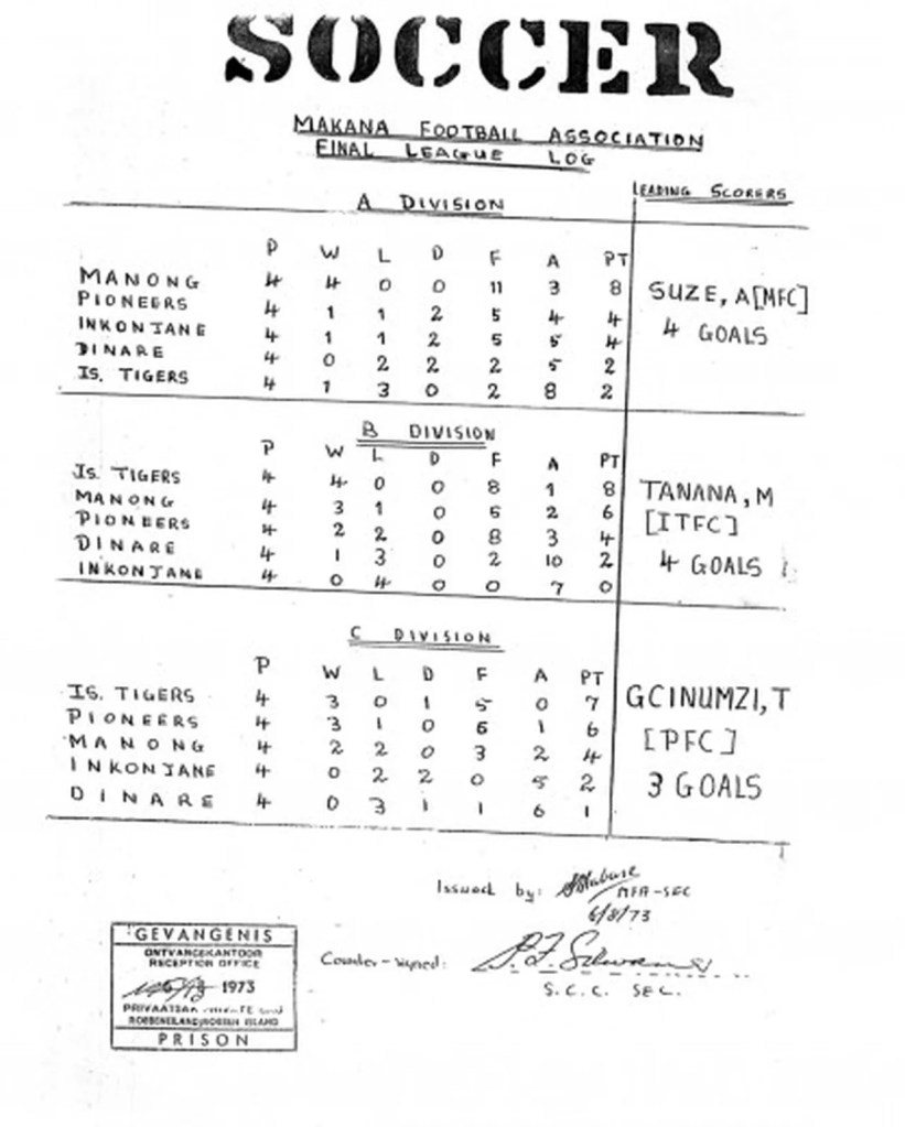 La convinzione era che si sarebbe trattato solo di un passatempo momentaneo: gli ospiti del carcere non erano nelle condizioni fisiche e psicologiche di poter giocare regolari partite, pensavano i bianchi. Invece, quegli uomini volevano fare le cose in grande. Dikgang Moseneke, militante del PAC che studiava legge nel tempo libero, 20 anni e in carcere da cinque, fu incaricato di redigere lo statuto dell’associazione che organizzava il campionato, e per questo ottenne di poter consultare il regolmento ufficiale della FIFA. Assieme ad altri collaboratori si occupò di mettere in piedi una struttura che non permetteva solo di giocare a pallone, ma anche di stilare un calendario, formare gli arbitri, tenere conto di classifiche, statistiche e punizioni disciplinari. Chiamarono la loro organizzazione Makana Football Association, dal nome di un guerriero xhosa che combatté contro i britannici a inizio Ottocento: arrestato e incarcerato a sua volta a Robben Island, nel 1820 organizzò la fuga di una trentina di prigionieri neri, che finirono quasi tutti annegati in mare.